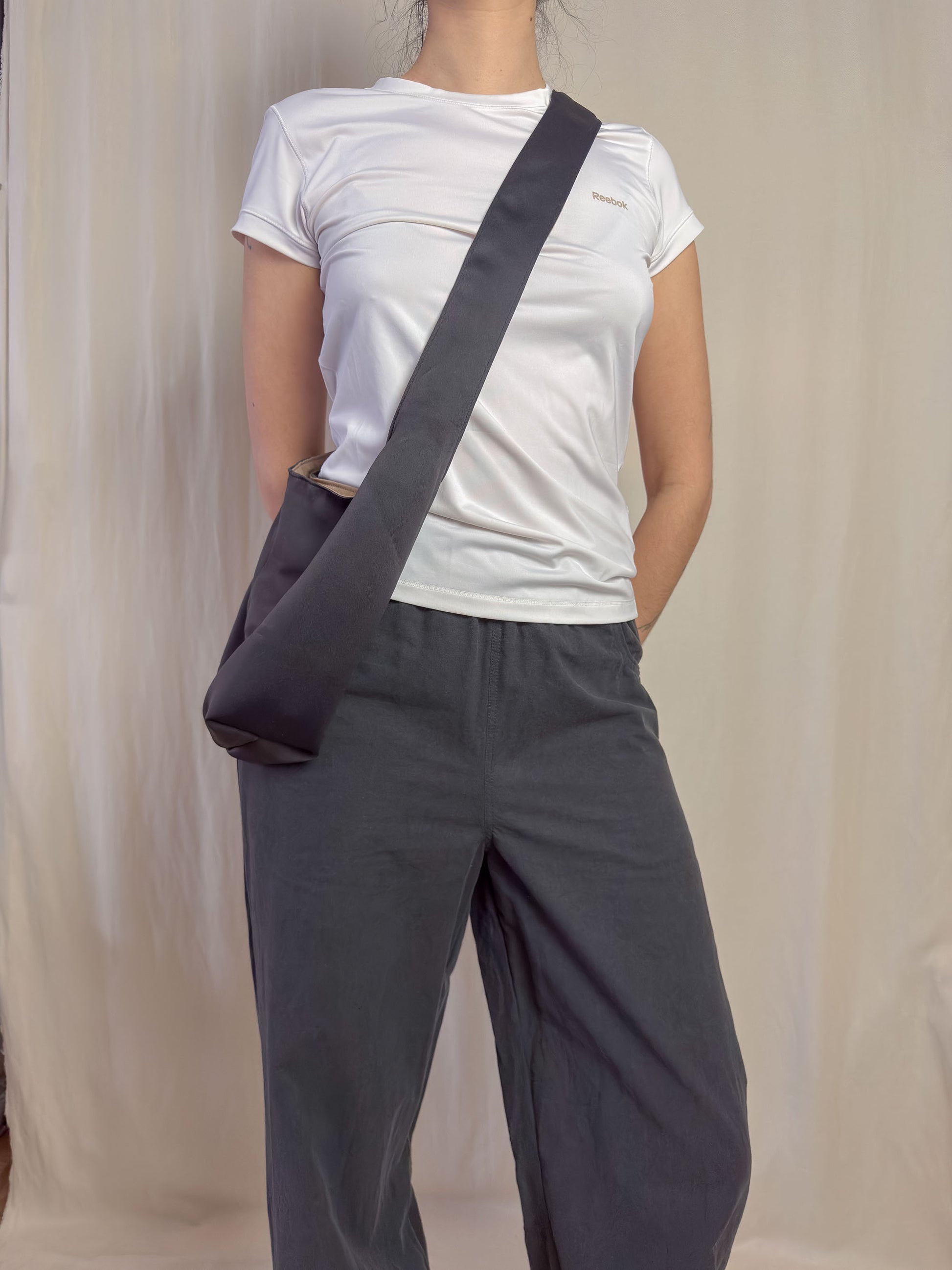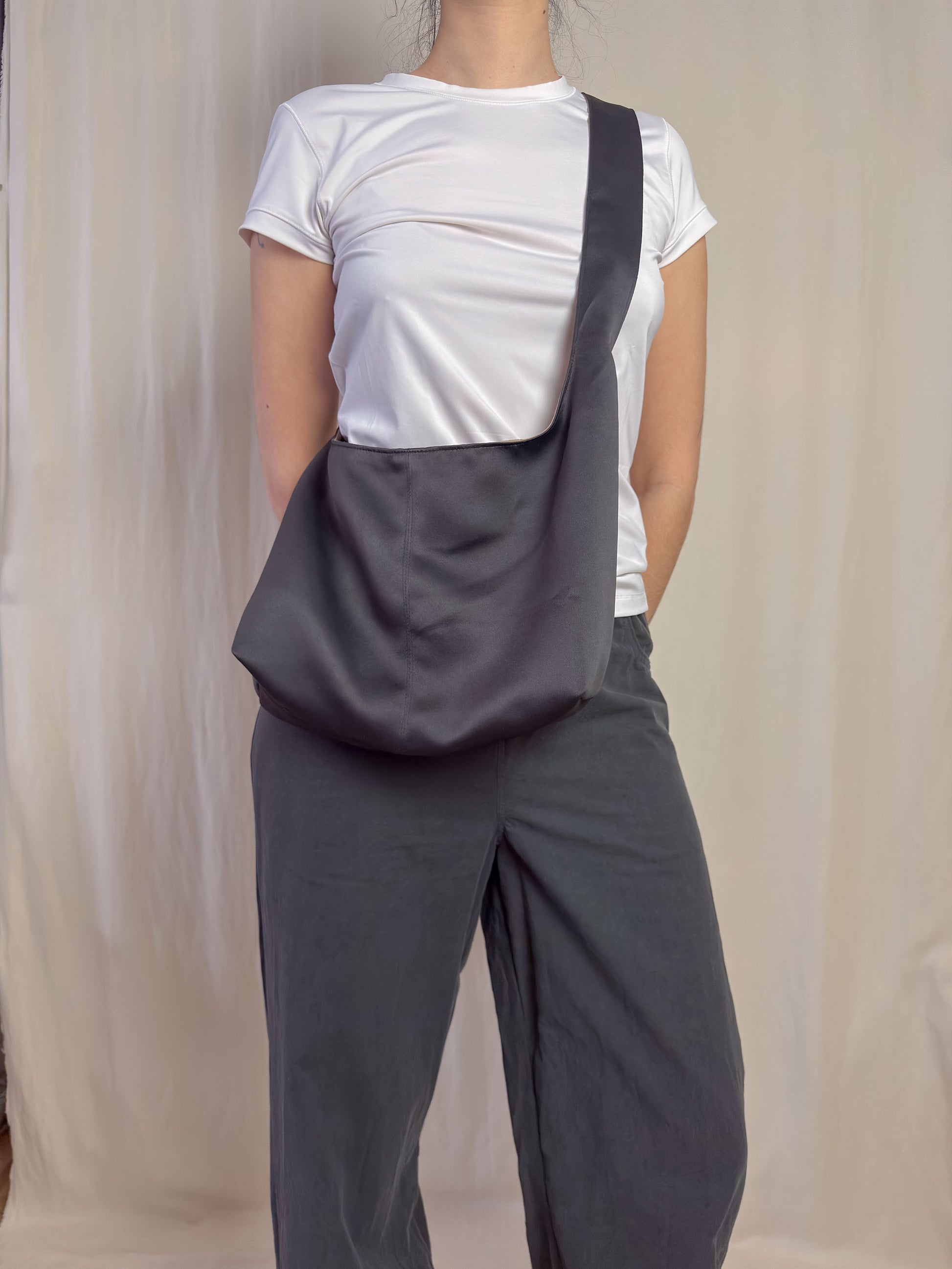 Handbag made in my Berlin workshop using second-hand fabrics, remnants or reclaimed textiles. Each piece depends on the materials available.