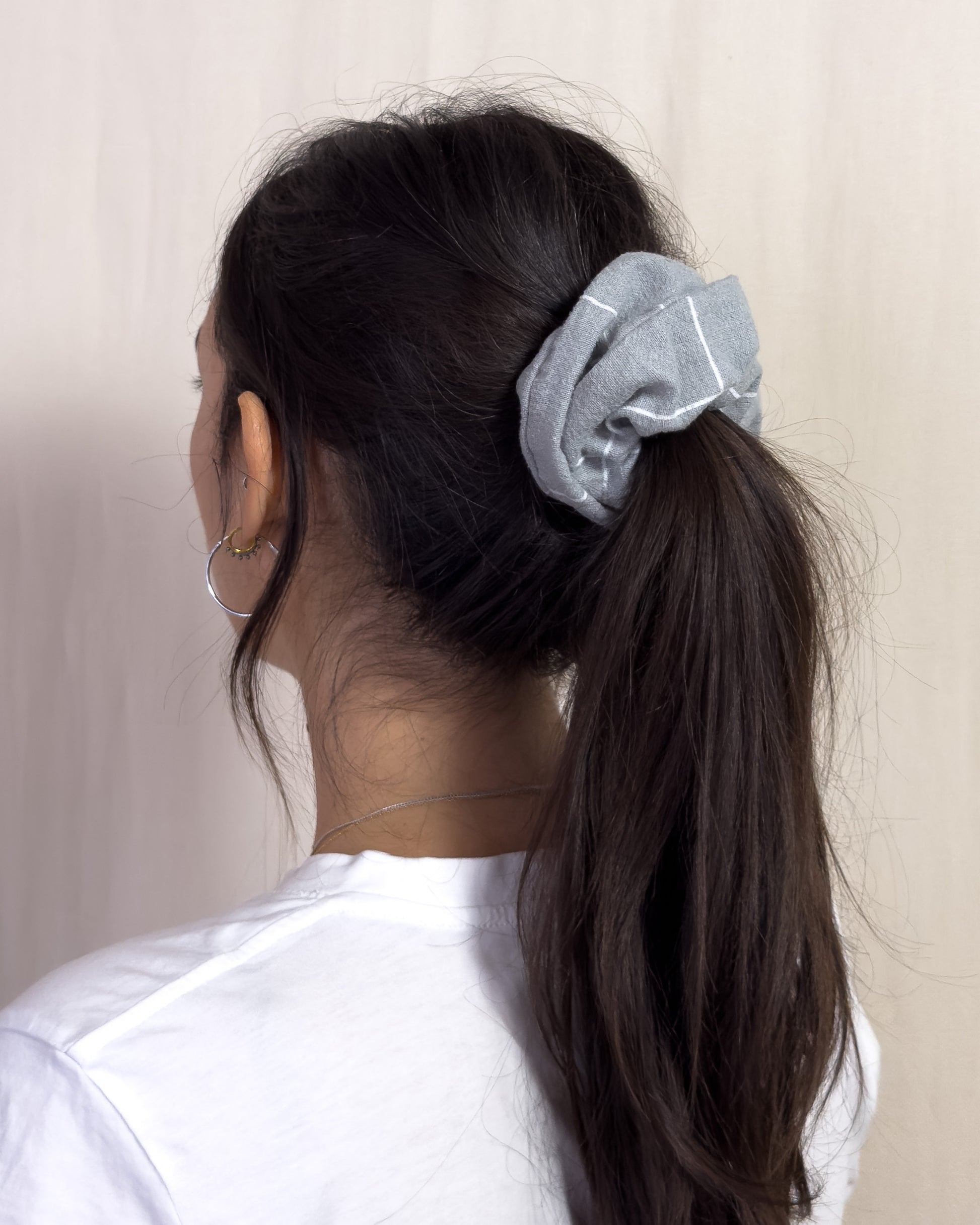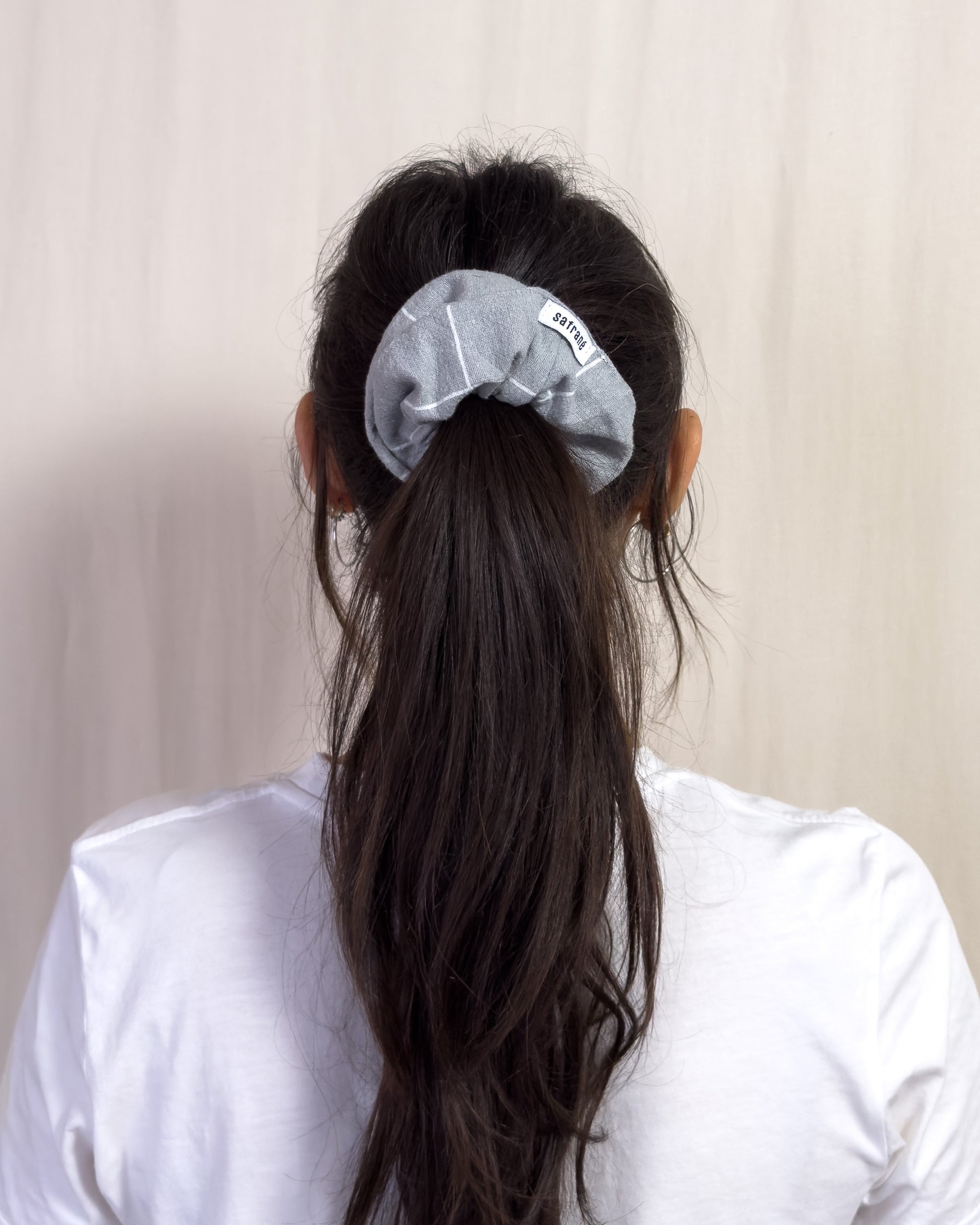 Scrunchie made in my Berlin workshop using second-hand fabrics, fabric remnants or reclaimed neckties.