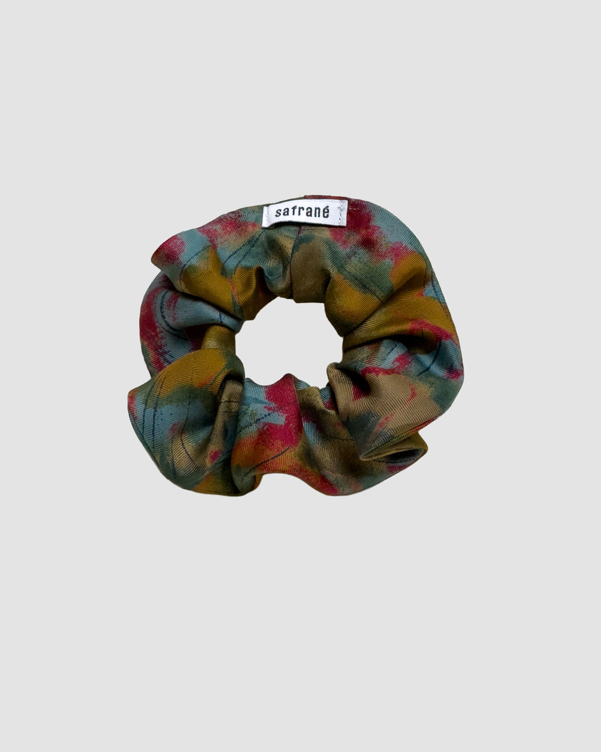Scrunchie made in my Berlin workshop using second-hand fabrics, fabric remnants or reclaimed neckties.