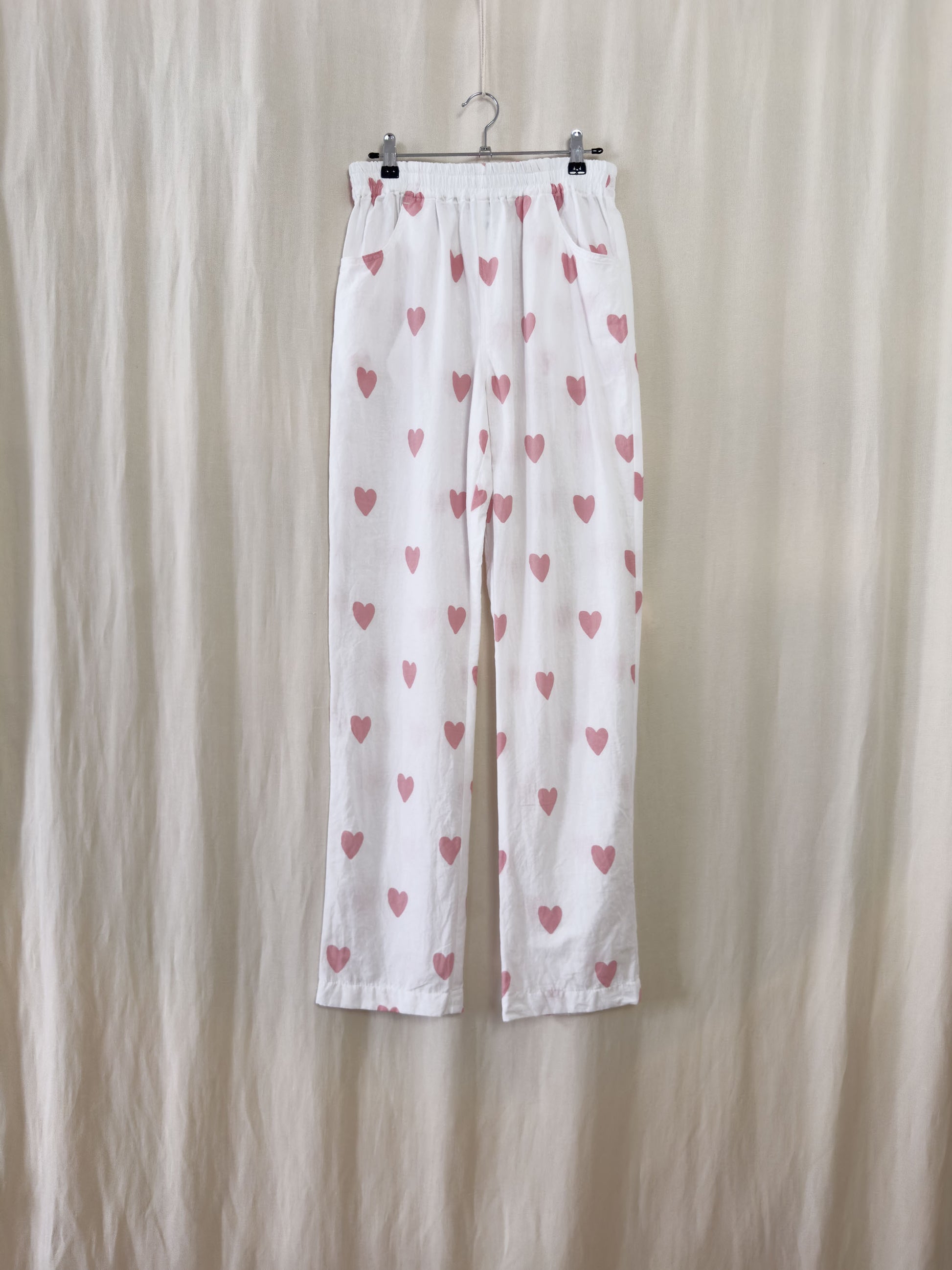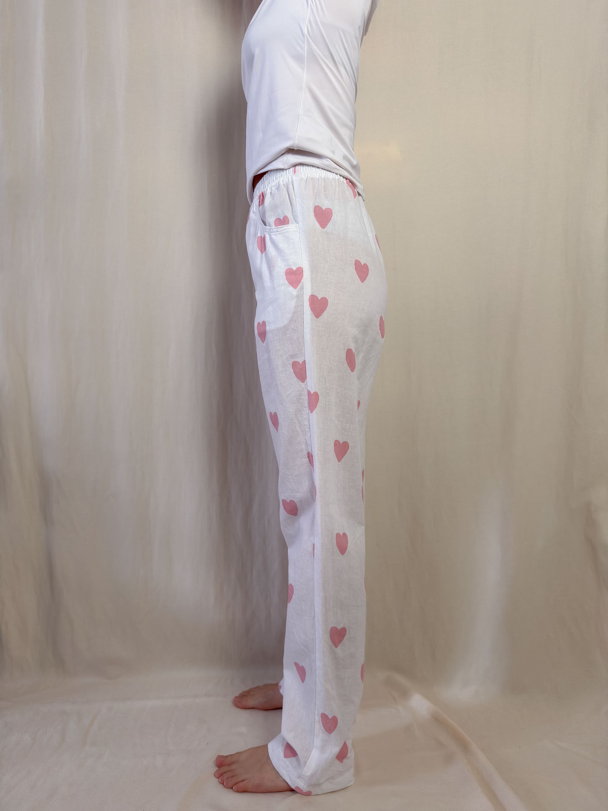straight trousers in white with pink hearts